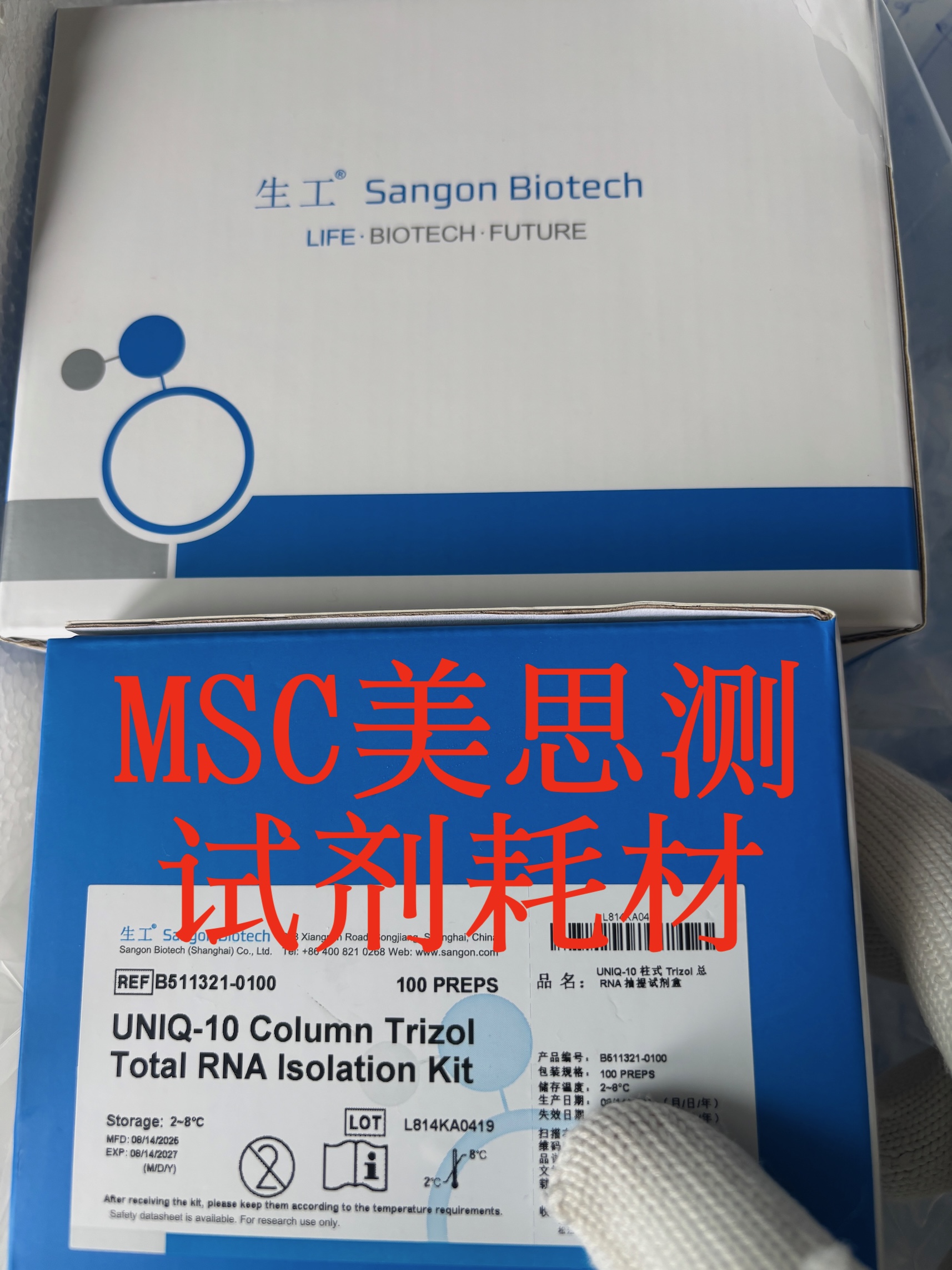 上海生工 UNlQ-10 柱式 Trizol 总 RNA 抽提试剂盒 100次