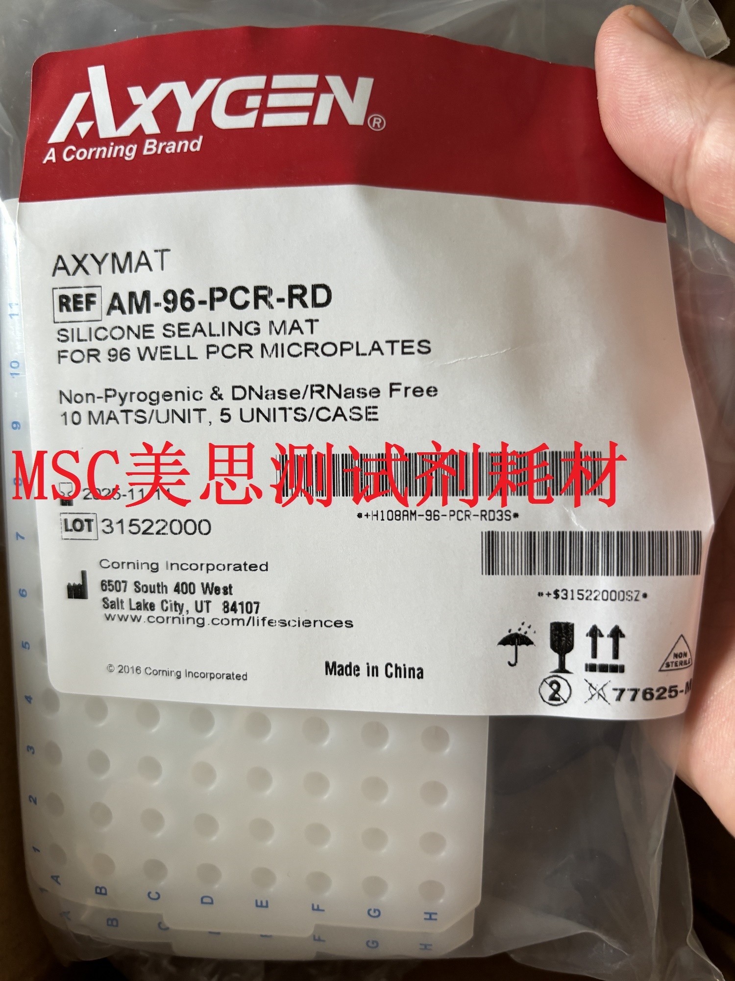 Axygen 96孔PCR板 硅胶盖 货号:AM-96-PCR-RD