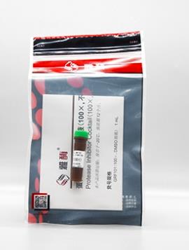 本品是一种广谱蛋白酶抑制剂,全面抑制Serine Proteases,Cysteine Proteases,Aspartic Acid-proteases,Aminopeptidases和Metalloproteases等细胞内所含的蛋白酶。