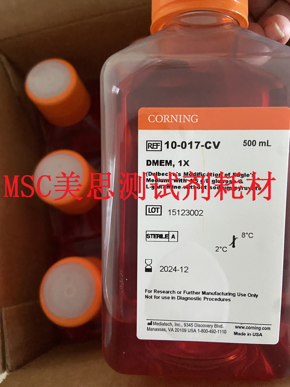 | Corning Cellgro | 10-013-CV | DMEM, 液体,含有4.5 g/L 葡萄糖, L-谷氨酰胺, 和丙酮酸钠, 现货特价! | 6*500ml |