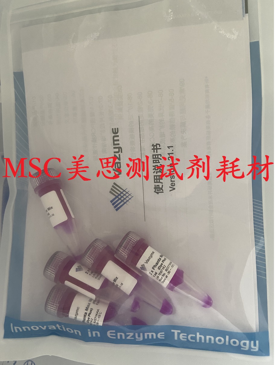 Phanta Max 中添加了延伸因子、促进因子以及平台期解抑制因子,使其在长片段扩增能力、扩增特性以及扩增产量方面得到了提升。使用λDNA、质粒等简单模板,Phanta Max 可以有效扩增长达40 kb 的片段;使用基因组DNA等复杂模板,Phanta Max 可以有效扩增长达20 kb 的片段;使用cDNA 模板,Phanta Max 可以有效扩增长达10 kb 的片段。此外,Phanta Max 对PCR 抑制剂具有良好的抵抗能力,可用于细菌、真菌、植物组织、动物组织或全血样品的直接PCR。Phanta Max 中添加了在常温下能够抑制其5’ → 3’ 聚合酶活性和3’ → 5’ 外切酶活性的两种单克隆抗体,可进行高特异性的热启动PCR。本产品包含Phanta Max Super-Fidelity DNA Polymerase、dNTP以及优化的缓冲体系,只需加入引物和模板即可进行扩增,减少了移液操作,提高了检测通量和结果的重现性。体系中加入的保护剂使得2 × Master mix经过反复冻融后仍可保持稳定的活性;体系中包含电泳指示剂,可在PCR反应完成后直接点样进行电泳。该酶具有5’ → 3’ 聚合酶活性和3’ → 5’ 外切酶活性,扩增产物为平端,适用于ClonExpress和拓扑克隆试剂盒(C112/C113/C115/C601)。