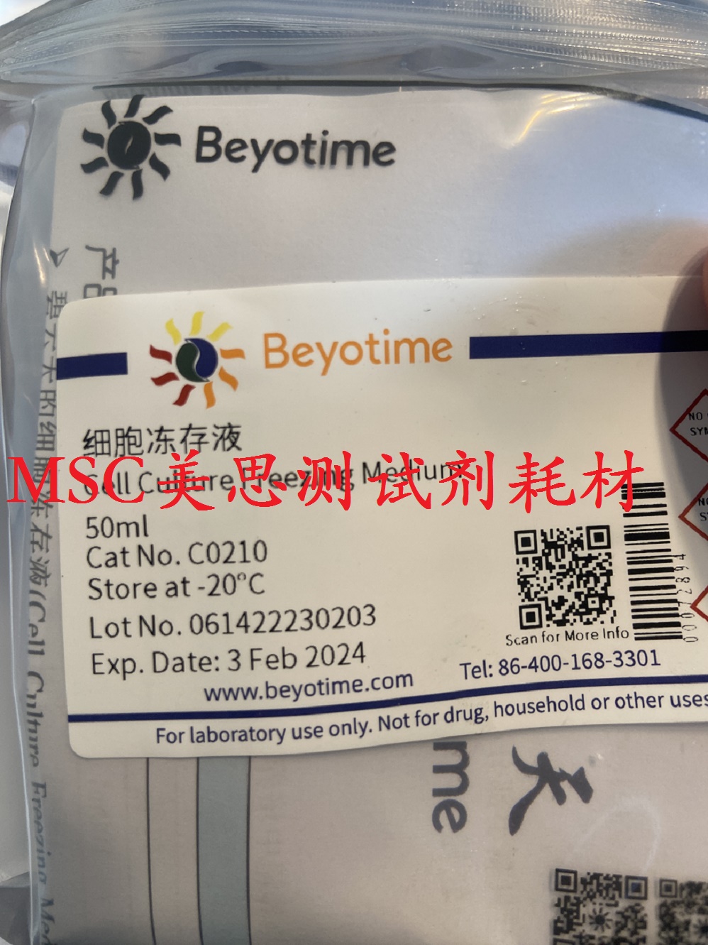 碧云天的细胞冻存液包含了细胞冻存所需的所有组分,主要成分是高糖DMEM、适量澳洲进口优质胎牛血清及DMSO等,并在此基础上优化了相关组分,可大大提高复苏时细胞的存活率。