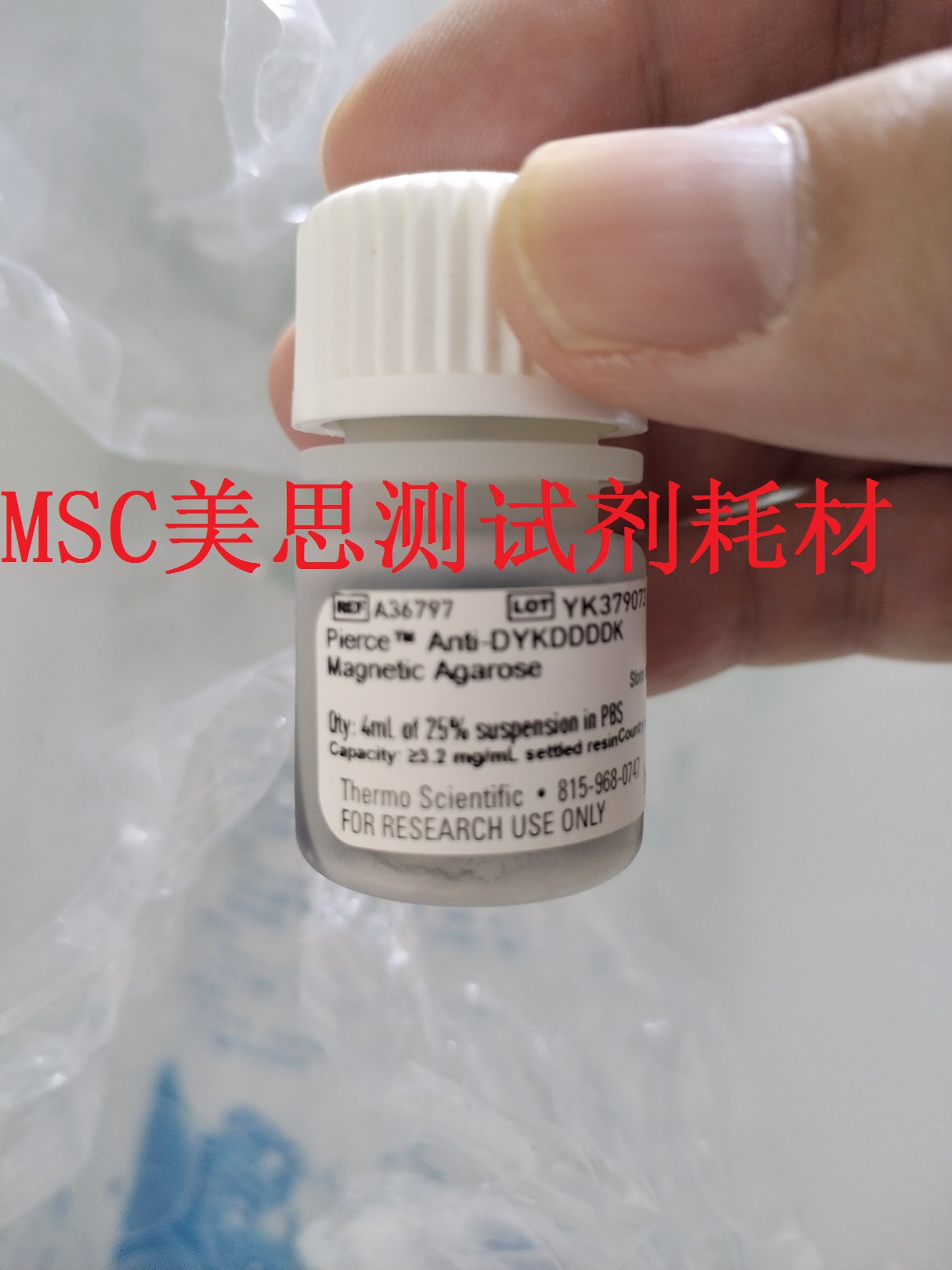 Thermo Scientific Pierce 抗-DYKDDDDK 磁性琼脂糖是一种从体外蛋白表达系统、细菌、酵母菌和哺乳动物细胞中进行 DYKDDDDK 标签蛋白纯化和免疫沉淀 (IP) 的快速便捷方法。氨基酸序列 DYKDDDDK(通常称为 FLAG)被高亲和力大鼠单克隆抗体(克隆 L5)识别,该抗体与磁石嵌入的琼脂糖核心颗粒共价连接。