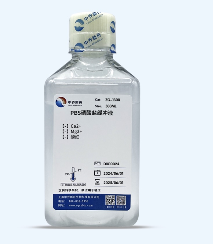 磷酸盐缓冲液(PBS)可用于多种细胞培养用途,如在解离细胞前的冲洗,运输细胞或组织样品,稀释细胞用于细胞计数,以及用来配制各种试剂溶液。