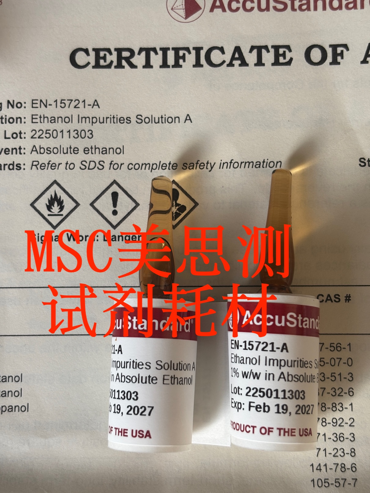 Accustandard 乙醇杂质6890混合标准液 EN-15721-A