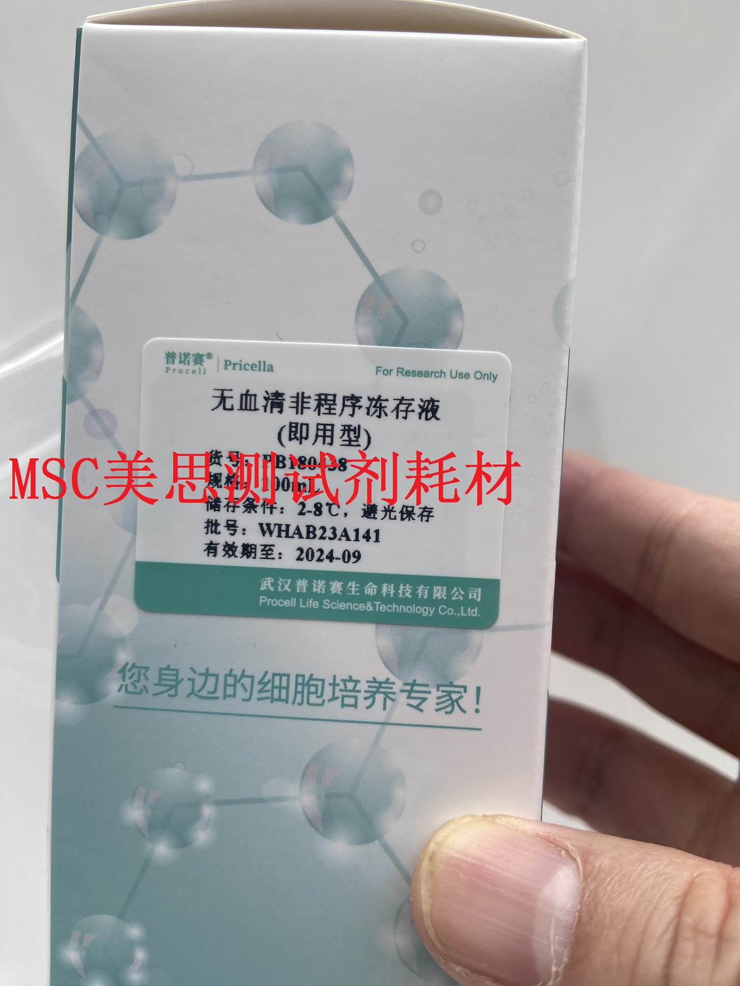 该产品添加了细胞沉降稳定剂,可延缓细胞在冻存过程中的沉降速率,防止细胞互相挤压,影响细胞冻存效果。另外,添加了细胞膜保护剂、渗透性细胞膜内保护剂、非渗透性细胞保护剂等多种冷冻保护剂,这些成分在溶液中同水分子结合,发生水合作用,弱化水的结晶过程使溶液的粘性增加从而减少冰晶的形成,能大大降低细胞在冻存过程中冰晶对于细胞的损伤,有效提高细胞复苏存活率。该产品配方成分明确,不含血清、不含动物源性蛋白,可减少各类细菌、病毒和支原体等污染,保证冻存细胞的安全;不仅适用于常规细胞系、原代细胞,同时亦适合于无血清培养细胞和蛋白表达细胞。